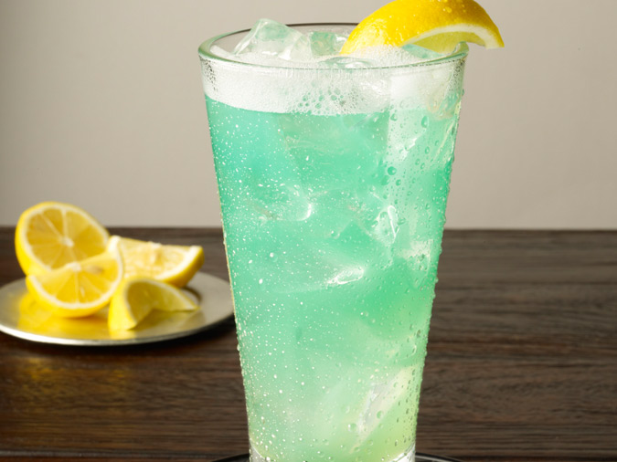 Lemon, lime and pineapple juices, blue curaçao syrup, fresh pineapples, and lemon-lime soda.